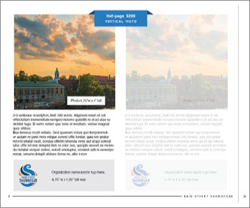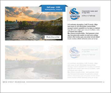 Half-page spread with one image displayed with your company logo and a 2-3 sentence description (limit 75 words).