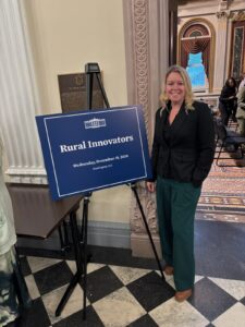 On Wednesday, December 18, our President & CEO, Kristina Cannon, was honored at the White House as one of just 14 Rural Innovators nationwide. Selected from hundreds of nominees, Kristina traveled to Washington, D.C., to join fellow changemakers at a special event celebrating the positive impact rural leaders are making in their communities across the country.